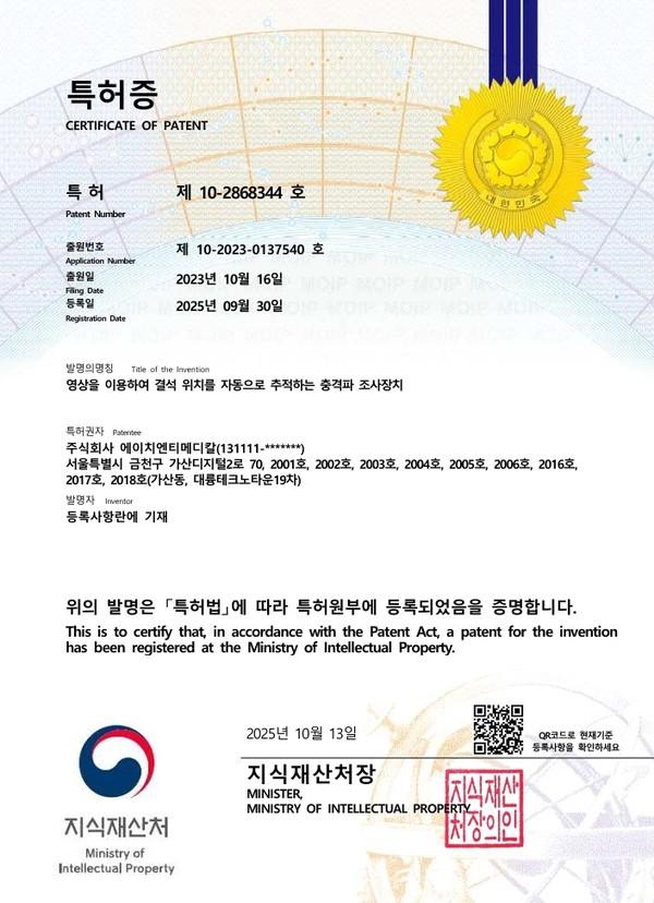 체외충격파 전문기업 ㈜에이치엔티메디칼(HNT MEDICAL, 대표 정재학)은 최근 ‘영상을 이용한 결석 위치 자동 추적 충격파 조사장치’ 기술에 대한 특허를 등록했다고 밝혔다.이번 특허 기술은 엑스레이(X-ray) 영상을 기반으로 요로결석의 위치를 자동으로 확인·추적할 수 있는 기술로 회사에서 기존에 보유한 △좌표 캘리브레...