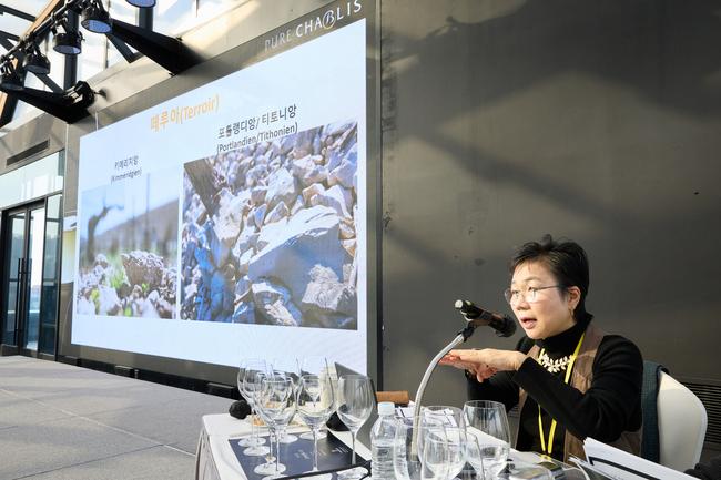 이인순 원장이 샤블리 와인 마스터클래스에서 토양에 대해 설명하고 있다 12월 4일 앰배서더 서울 풀만 호텔에서 ‘샤블리 와인을 가까이 들여다보기’를 주제로 샤블리 와인 마스터클래스가 성황리 개최됐다. 이번 행사는 푸드 페어링과 함께하는 미니 시음회로 이어졌다.