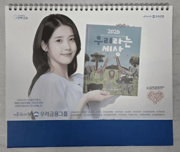 2026년 우리은행 아이유 탁상달력 (이미지=구글) 2026년 은행권의 달력 전략이 뚜렷하게 갈리면서 금융권 마케팅의 방향성 논쟁이 재점화되고 있다. 우리은행은 지난해에 이어 올해도 아이유를 모델로 한 달력을 제작해 고객 호응을 이어가는 반면, NH농협은행은 2025년 달력에서 모델 고윤정을 전면에 내세워 폭발적 인기를 끌었음에도, 2026년에는 돌연 자연 풍경 중심의 ‘무(無)모델’ 달력을 선택했다.