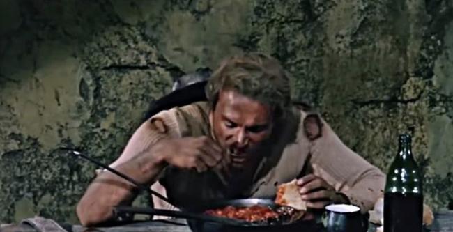 그는 해당 작품에서 ‘레전드 식사 장면’으로 불리는 명장면을 남겼다. 테렌스 힐은 장면 촬영 전 24시간 동안 아무것도 먹지 않은 채 금식을 한 뒤, 실제로 식사를 하듯 거침없이 음식을 먹는 연기를 선보였다. 이 장면은 억지 연기가 아닌 진짜 식사의 몰입감을 전달해 이후 수십 년 동안 영화 팬들에게 회자됐다.