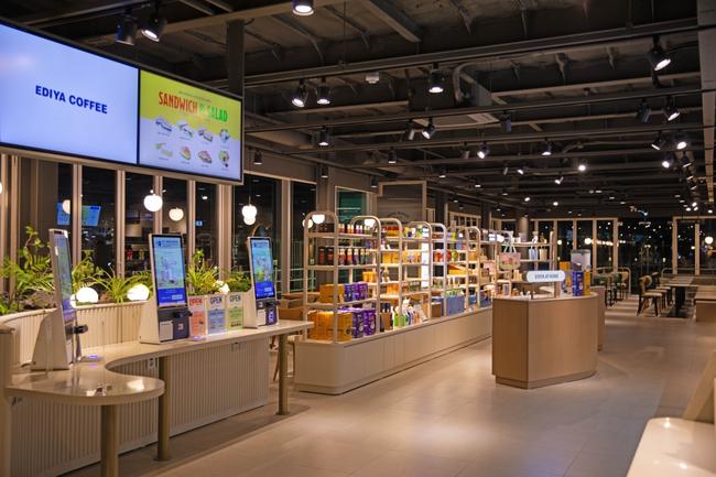 매장 중앙에는 커머스 MD존을 배치해 이디야 스틱커피, 핸드드립 커피, 티 제품과 텀블러 등 굿즈를 한 자리에서 둘러볼 수 있도록 구성했다. 또한 이디야 스테디셀러 스틱커피, 커머스 신제품 등을 시음 후 구매할 수 있도록 시음부스를 운영하여 소비자 경험을 확대할 계획이다.